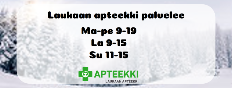 Laukaan apteekki huolehtii hyvinvoinnistasi kokonaisvaltaisesti yhteistyössä muun terveydenhuollon kanssa. Tervetuloa tuttuun, ystävällisen palvelun lähiapteekkiin!